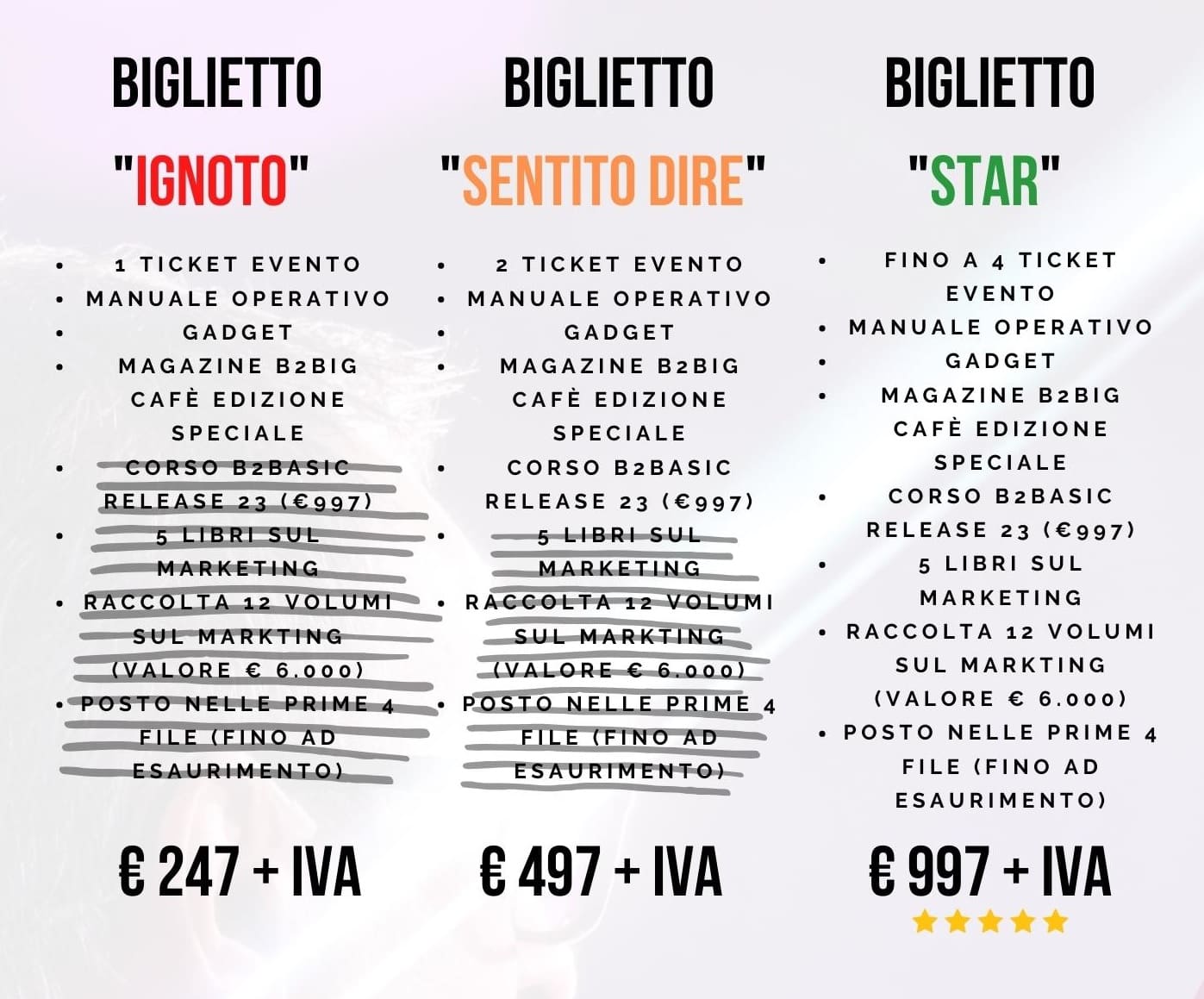 B2Big® Live è più di un semplice evento: è un'esperienza formativa completa che ti offre un accesso privilegiato a strategie, tecniche e contenuti inediti, sviluppati dai professionisti dell'agenzia di marketing, L'Ippogrifo®.